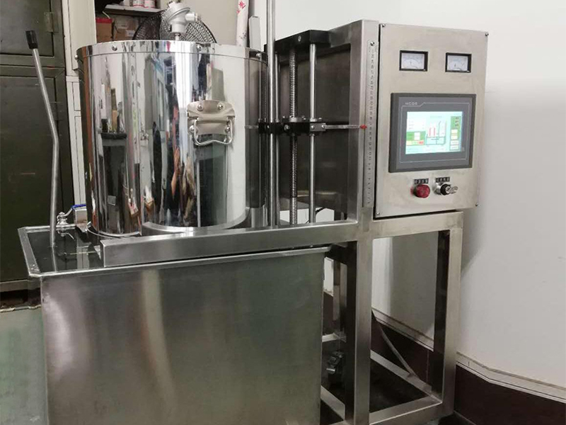 本设备用于铝及铝合金的定向凝固实验,在加热石英管管内放入试样,溶解成液体后,通过炉体下部的步进电机将石英管逐渐落入炉体下部的水箱中进行凝固,下降速度0.01-1mm/s,可控通过左侧手柄,快速将石英管落入水中进行凝固;